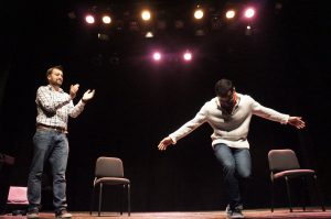 So I cheated a little as I came from a theatre background originally but the point still stands. Here’s a test. Sprinkle flour all over your stage before you do your set. Afterward look at your footprints on the stage. Notice anything? For many improvisers who don’t have any theatrical acting experience and start performing on larger stage, spatial awareness can become a challenge. Improvisers can linger at the back of a stage and the front can often be neglected. (My pet peeve is when chairs are at the rear of the stage out of a scene and then performers sit down in the chairs without bringing them forward.) Taking acting classes can go a long way to polishing your act and making your characters and dramatic moments more believable. Learn how to use the full dimensions on the stage – and the room around it.